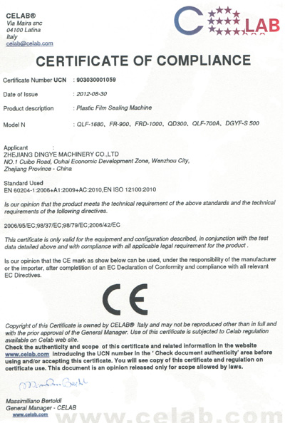 鼎業封口機CE證書